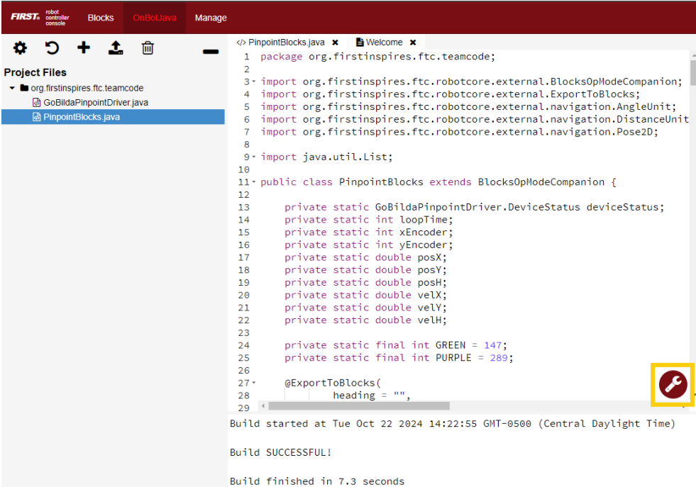 - Abra na aba esquerda PinpointBlocks e verifique se os blocos do Pinpoint aparecem