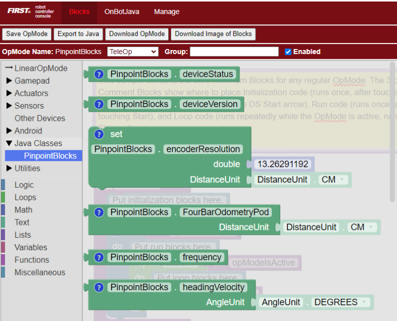 - Crie um novo OpMode em blocos